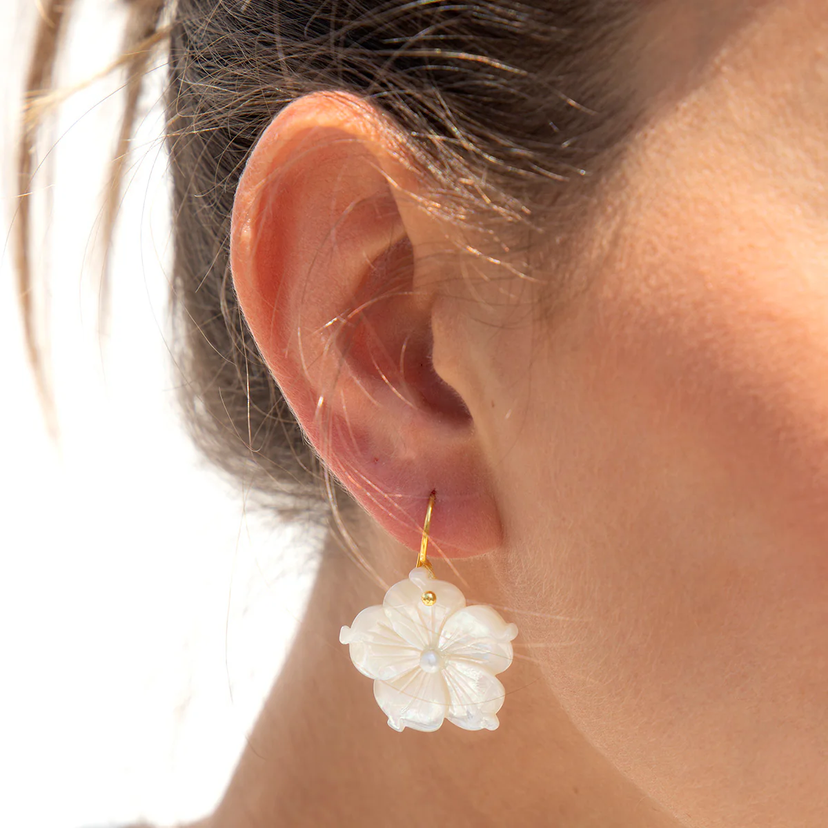 Made of white carved mother of pearl, the Antheia earrings will become your favourite everyday accessory. Awesome for officewear, these hook earrings are equally great with eveningwear; either / or, they say perfection.