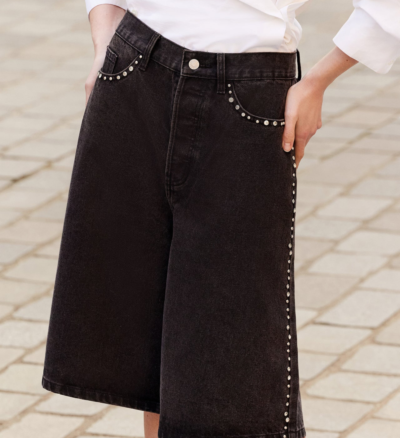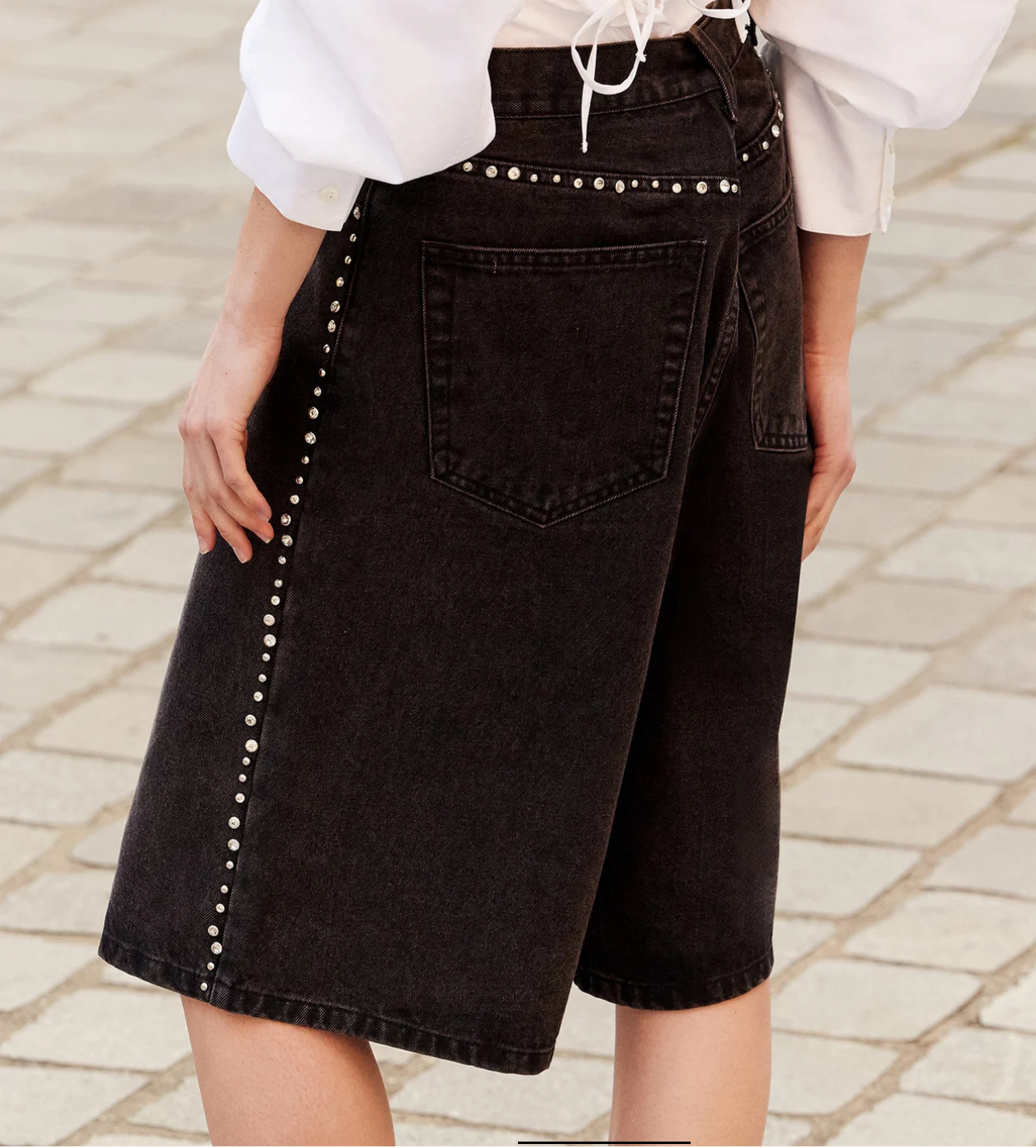 Elevate your style with these black denim long bermuda shorts, designed in the classic 5-pocket style for a timeless touch.